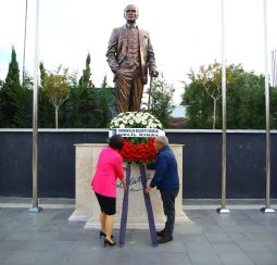Atatürk büstüne çelenk bıraktılar