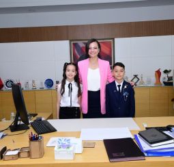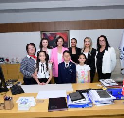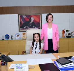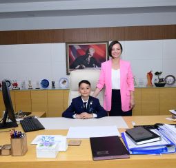 Karabağlar Belediye Başkanı Helil Kınay, 23 Nisan Ulusal Egemenlik ve Çocuk Bayramı kapsamında, makamında çocukları ağırlayarak, onlara koltuğunu devretti.