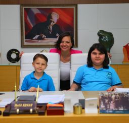 23 Nisan Ulusal Egemenlik ve Çocuk Bayramı kapsamında Karabağlar Belediye Başkanı Helil Kınay, Hatice Hanım İlkokulu 3. sınıf öğrencisi Elifnaz Uyanık ile Selim Ayaz Çok’u makamında ağırlayarak başkanlık koltuğunu sembolik olarak devretti.