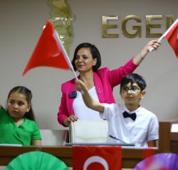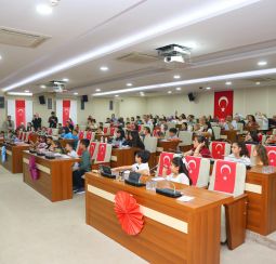 Kutlamalar kapsamında Karabağlar Belediye Meclisi'nin koltuklarına bu kez de çocuklar oturdu. Karabağlar’ın 58 mahallesinden gelen çocuklar, meclis kürsüsünde dilek ve önerilerini dile getirdi.