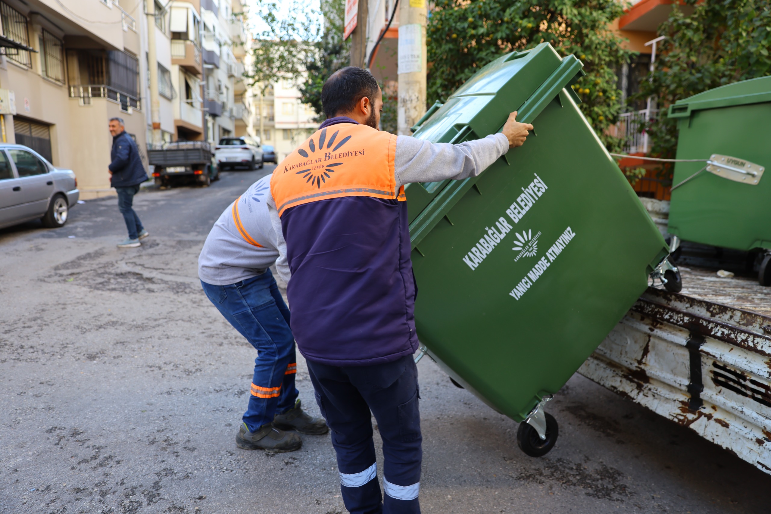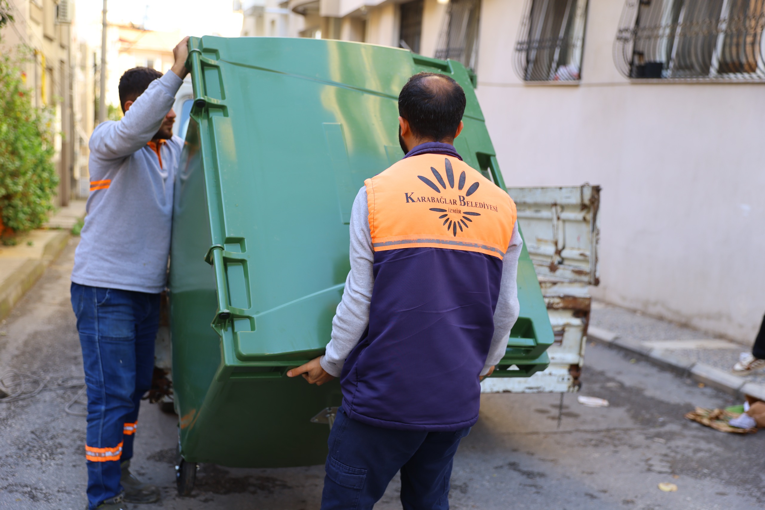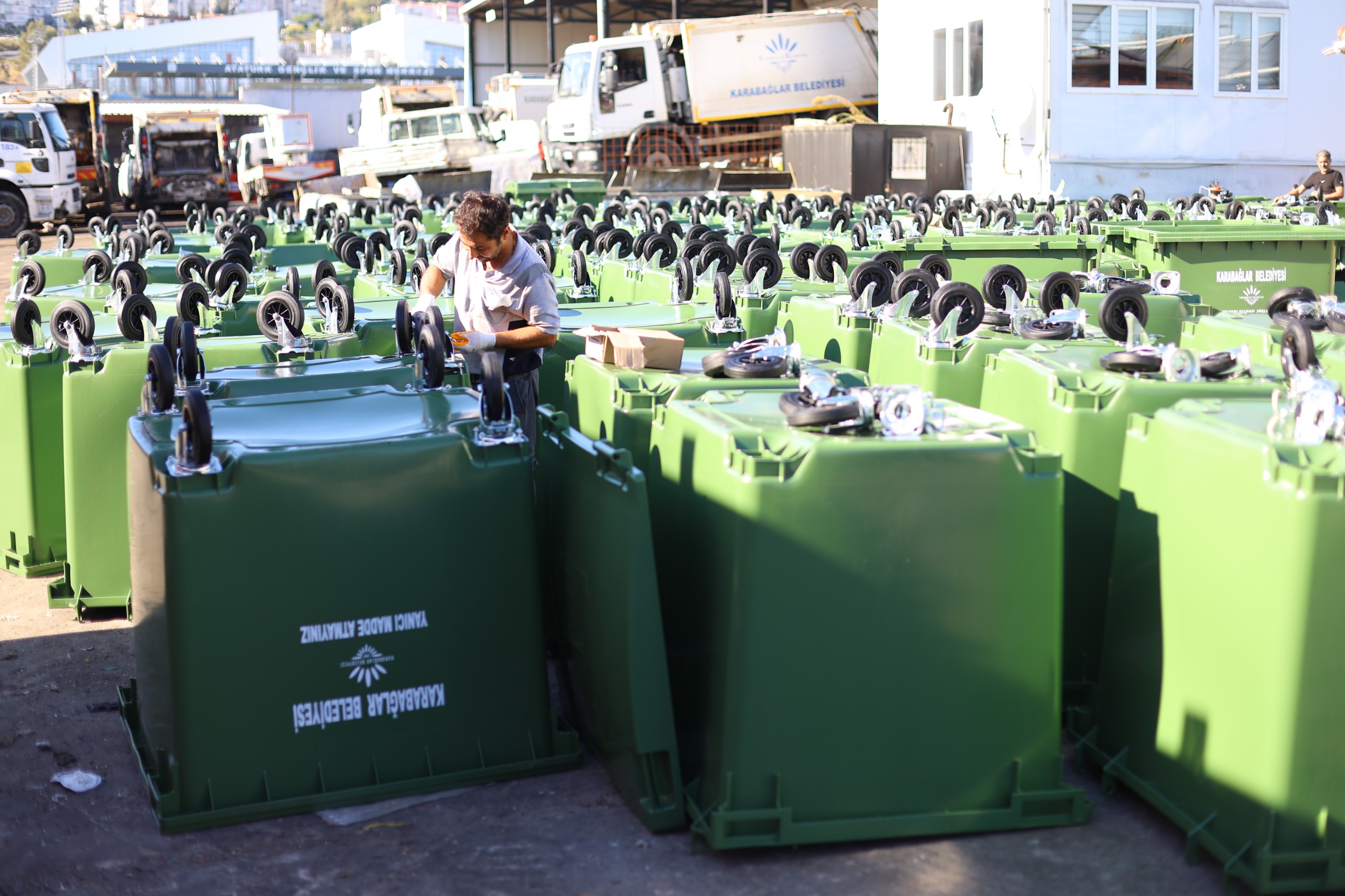 Karabağlar Belediyesi, ilçede temizlik hizmetlerini güçlendirmek amacıyla çöp konteynerlerini yenileme çalışmalarını aralıksız sürdürüyor. Temizlik İşleri Müdürlüğü tarafından montajları yapılan yeni plastik ve metal konteynerler mahallelere dağıtılırken, kalan miktarın da peyderpey teslim edileceği belirtildi.