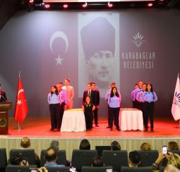 Karabağlar Belediyesi’nde görev yapan aday memurlar, düzenlenen törenle yemin ederek memuriyet statüsüne resmen geçti. Törende 16 aday memur, masalarda bulunan Türk bayrakları önünde okunan yemin metnini hep bir ağızdan tekrarlayarak devlete bağlılık ve sadakat sözü verdi.