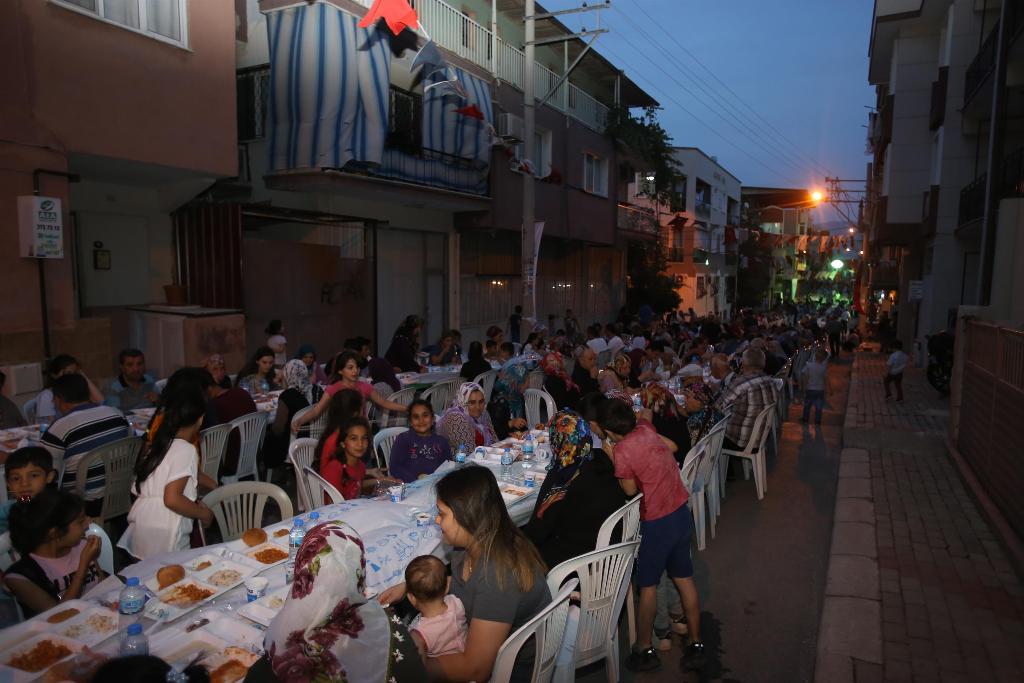 Aydın Mahallesi 4307 Sokak'ta düzenlenen iftar sofrasına Aydın Mahallesi Muhtarı Veysi Turan, belediye meclis üyeleri, CHP Karabağlar ilçe yöneticileri, muhtarlar, vatandaşlar katıldı.