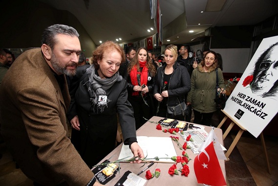 Konuşmaların ardından katılımcılar anı defterine duygularını yazarak karanfil bıraktı.