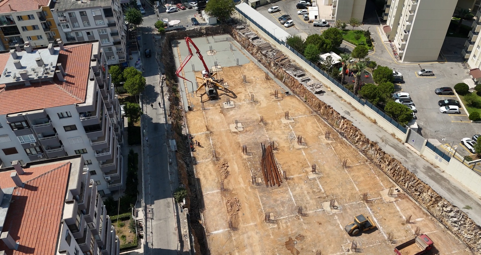Ekiplerin haftanın 6 günü yoğun şekilde çalıştığı pazaryerinde temel izolasyon ve radye temel imalatları tamamlandı. Temel üstü dolgu işlemleri bitirilirken, grobeton imalatları devam ediyor. Bodrum katta kolon ve perde demirlerinin imalatına başlanmış durumda. Demir imalatına geçilmeden önce mevcut demirler tekniğine uygun yöntemlerle temizlendi ve testlere gönderildi. Yapılan testler sonucunda demirlerde herhangi bir hasar olmadığı belirlendi. Bodrum kat perde ve kolon kalıp imalatı devam ederken, önümüzdeki hafta bir bölüm kolon ve perde imalatının tamamlanması hedefleniyor.