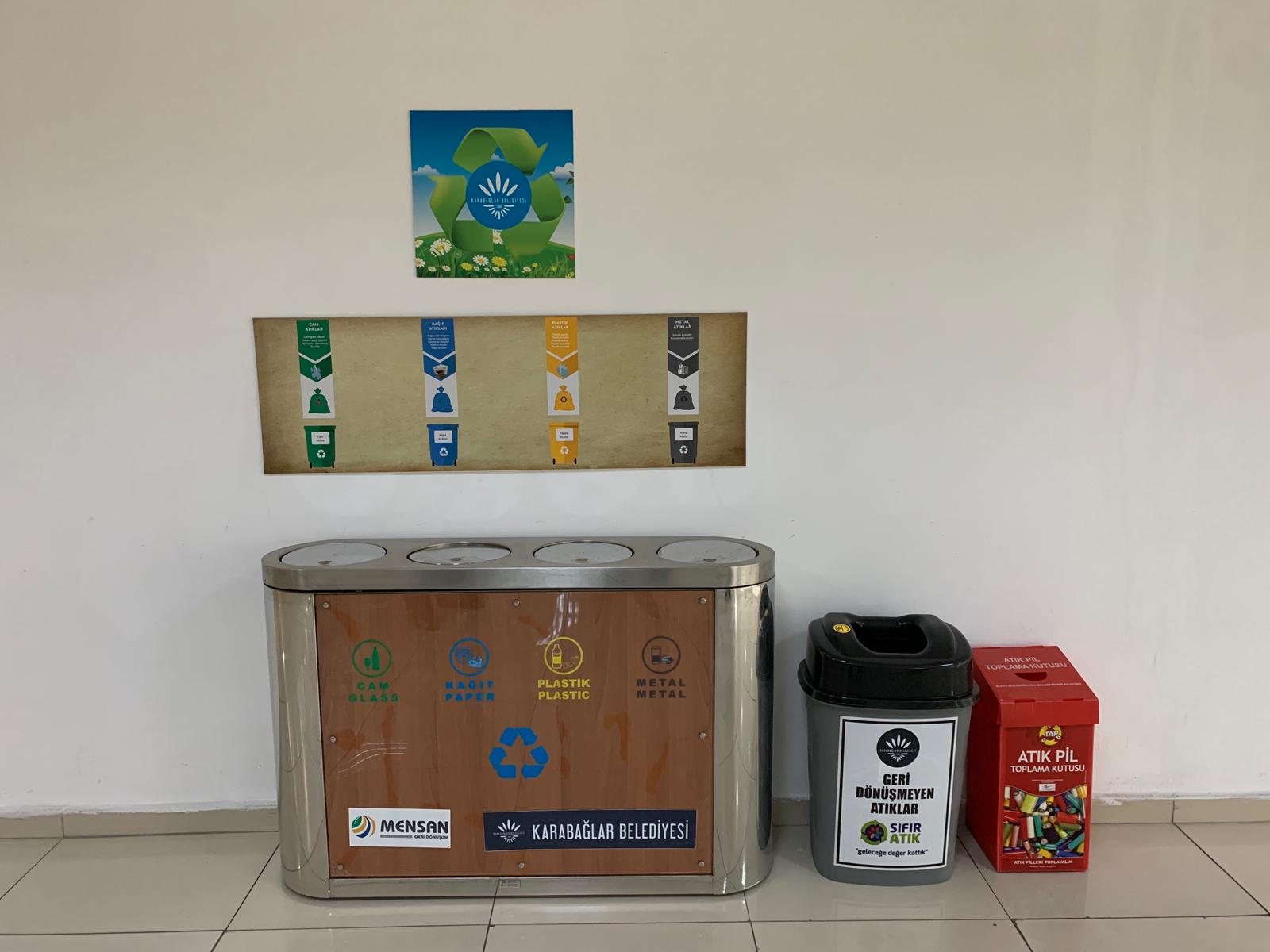 "Sıfır Atık Projesi kapsamında Ana Hizmet Binamız ve Belediyemiz Yerleşkelerinde ikili atık ayrıştırma sistemi kurulmuştur. Bunun yanı sıra birimlerde oluşan tehlikeli atıkların toplanması için gerekli geçici atık depoları inşa edilmiş, birimlere gerekli atık toplama ekipmanları yerleştirilmiştir. Oluşan atıkların lisanslı firmalarda bertaraf/ geri dönüşümü sağlanmaktadır.